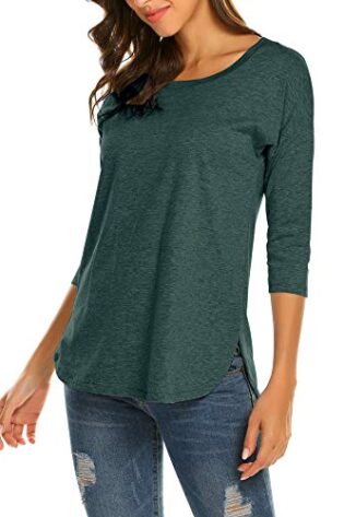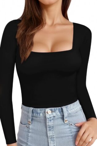 MANGOPOP Womens Long Sleeve Square Neck T Shirts Tops Tees