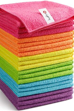 Orighty Microfiber Cleaning Cloths, Pack of 20, Highly Absorbent Cleaning Supplies, Lint Free Cloths for Multiple-use, Powerful Dust Removal Cleaning Rags for House, Kitchen, Car Care(12×12 inch)